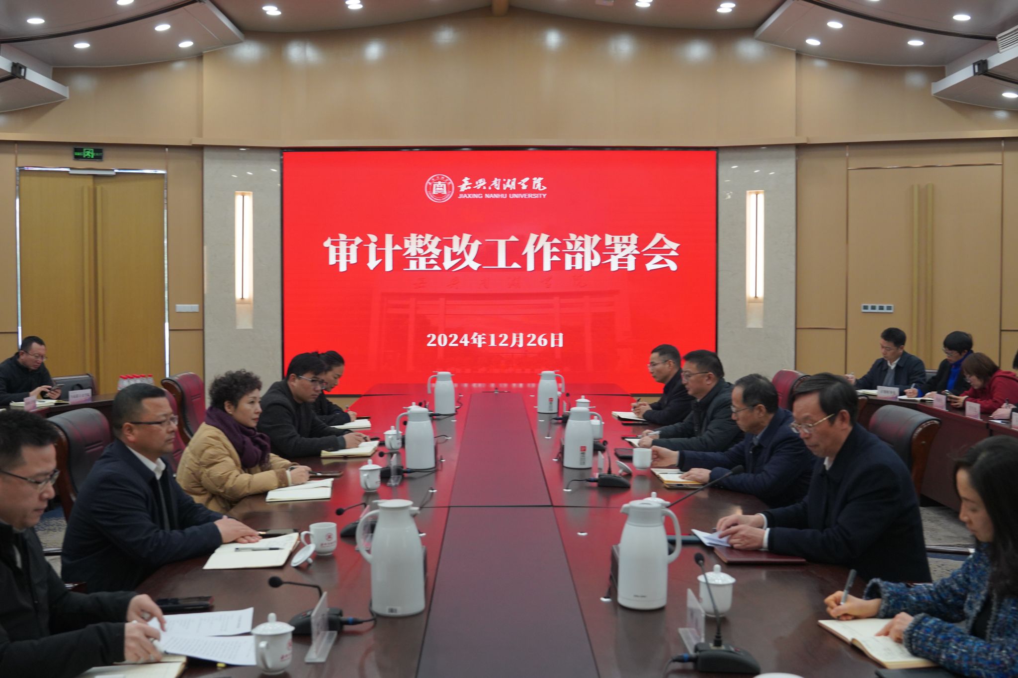 12月26日下午,学校召开审计整改工作部署会。校党委书记倪沪平出席会议并讲话,校长贾文胜作审计整改工作部署,校领导班子成员出席会议。会议由副校长蒋文波主持。